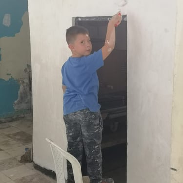 De eerste stappen zijn gezet, bestuderen koop, tekenen akte, bouwtekening en aan de slag..samen met de broeders en jongelui aan het werk